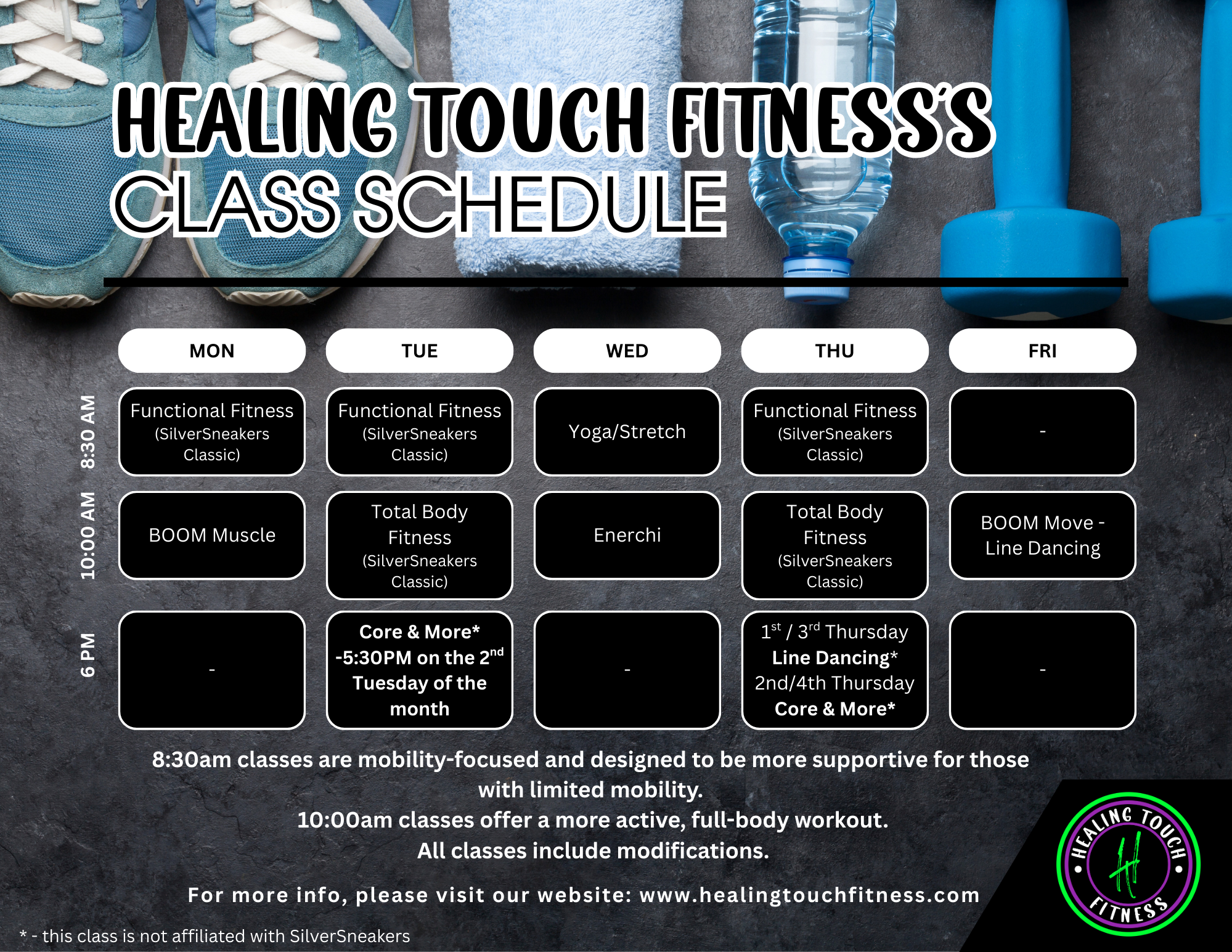 All classes emphasize safe, effective exercise, proper technique, and a welcoming community. All levels are welcome.
